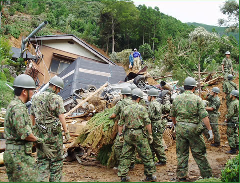 東日本大震災で 復興に尽力する自衛官の姿には、